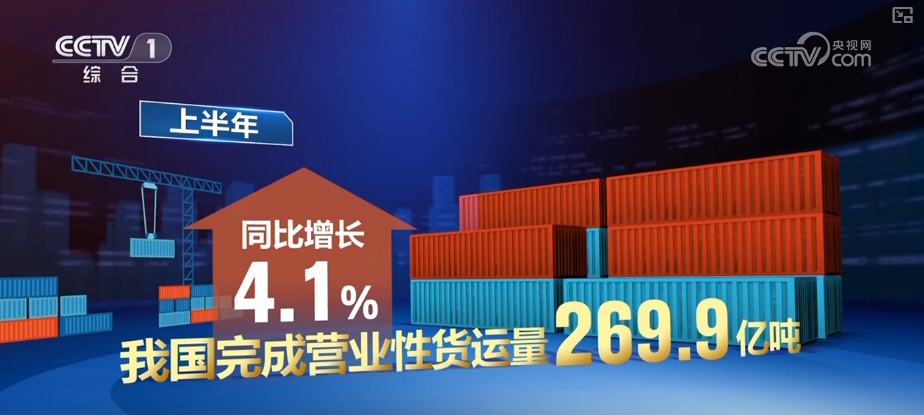 记者从交通运输部获悉,上半年,我国完成营业性货运量269.9亿吨,同比增长4.1%。全国港口货物吞吐量达85.6亿吨,同比增长4.6%。