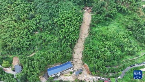 这是7月28日在衡阳市南岳区寿岳乡岳林村拍摄的山体滑坡现场(无人机照片)。新华社记者 陈振海 摄