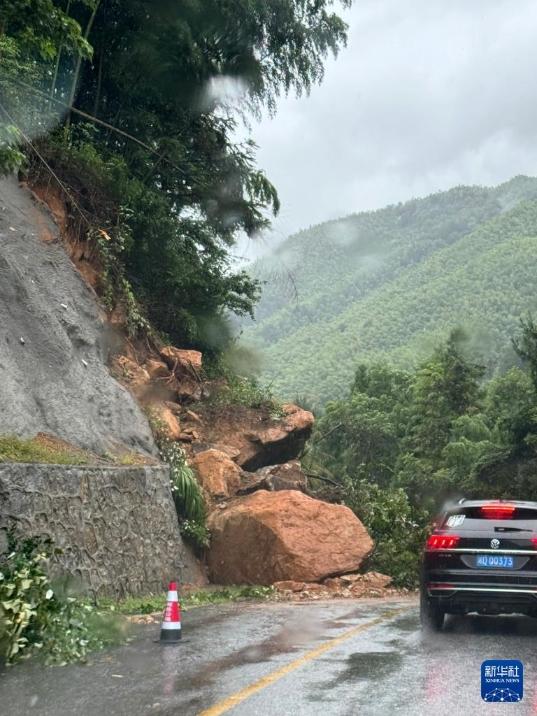 从南岳城区往寿岳乡岳林村的道路沿途多处塌方(7月28日摄)。新华社记者 张格 摄