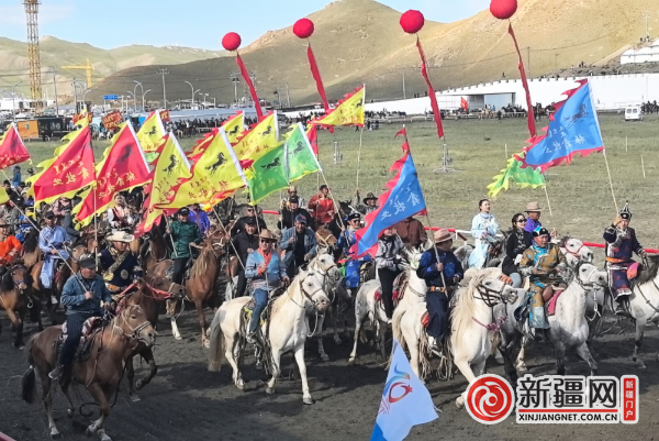 当日,参加本届那达慕大会的各支代表队组成了8个方阵参加了入场仪式。在所有的方阵当中,除哈达方阵、传统服饰方阵、博克方阵和裁判方阵等方阵外,和静县各乡镇代表队均骑马入场,首度参加入场仪式的和硕县和博湖县代表队也都骑着自己的“坐驾”,数百匹巴音布鲁克大山马瞬间燃起游客的激情。