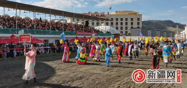 新疆网讯 7月27日,庆祝新疆巴音郭楞蒙古自治州成立70周年暨和静县第二十四届东归那达慕大会活动启幕。当日,在和静县巴音布鲁克镇的赛马场上举办了开幕式,和静再度为游客呈现了“千里马狂欢”的盛大场景。