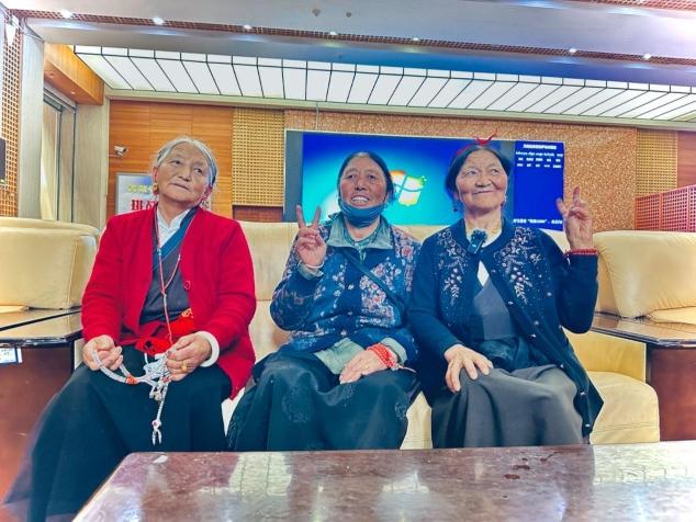 来自四川甘孜的三位阿妈在拉萨火车站等候前往青海西宁的列车。人民网记者 益西康珠摄