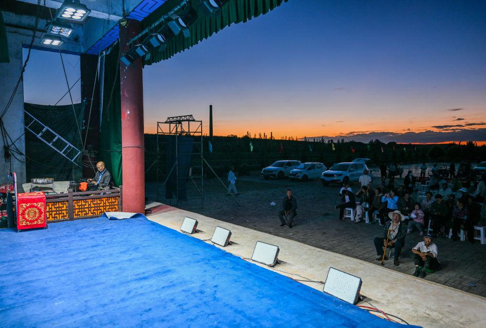 7月26日,晋剧团要在晚间表演曲目《辕门斩子》,戏迷们早早就在戏台下等待。