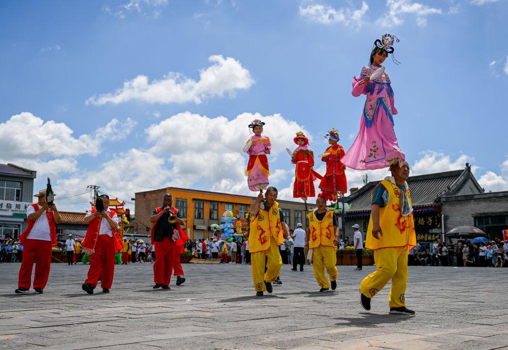 7月25日,庙会上的脑阁表演。