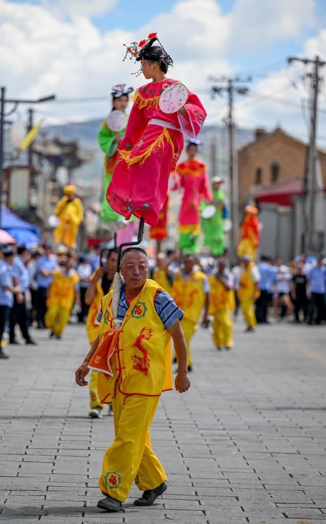 7月25日,庙会游行队伍中的“穿心官”项目。