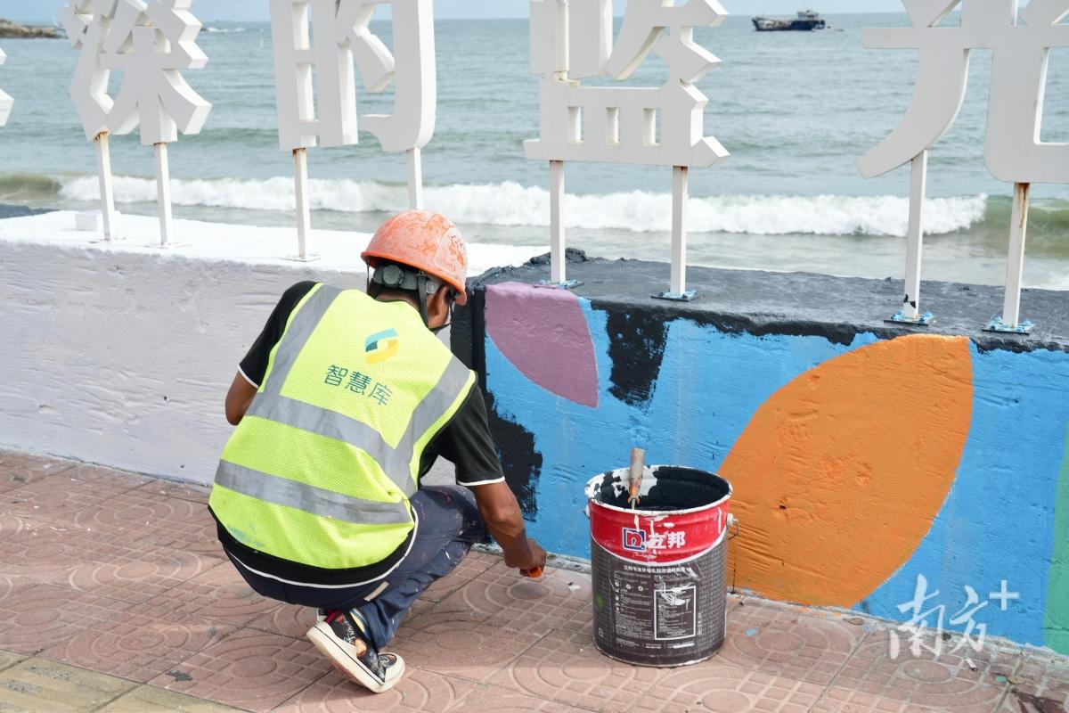 近日,记者再次来到红海湾海边街,看到十几名画家正对网友意见较多的几幅彩绘进行修改。