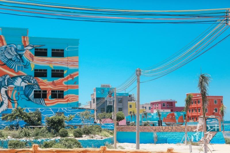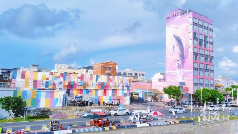 在汕尾市金厢镇内,妙趣横生的涂鸦墙让海岸绚丽多彩。 南方+记者 许舒智 摄