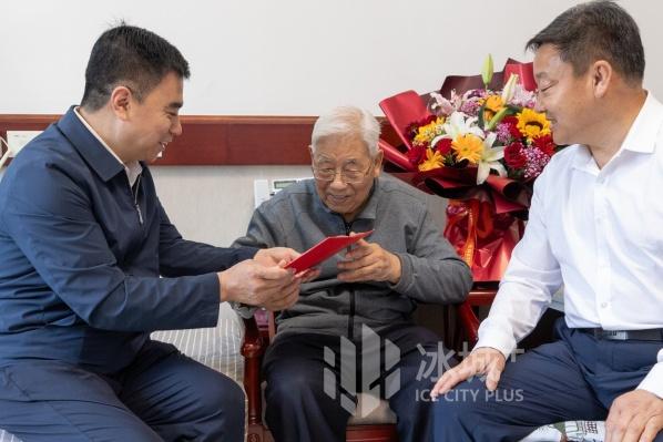 近日,哈尔滨市退役军人事务局的工作人员带着鲜花与敬意来到松北区森海医养中心,拜访了94岁的军队离休老干部白韧老人,同时带去了市慈善总会开具的捐赠证书,感谢白韧与已故妻子马淑敏为退役军人家属捐赠50万元的善举。