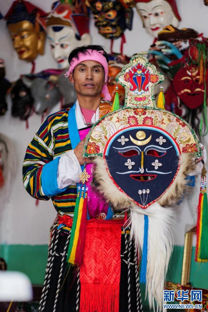 7月23日,藏戏演员拿着面具。新华网发 吴金朋 摄