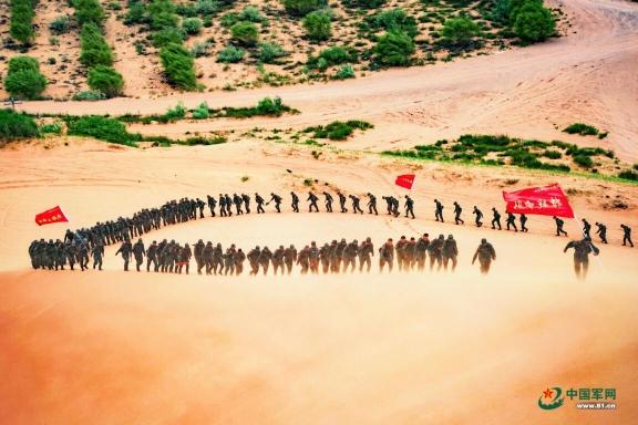 正在徒步行军的中国军人。图源:中国军网