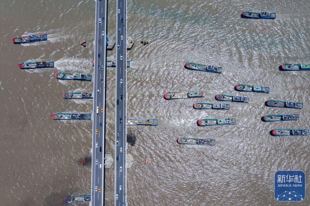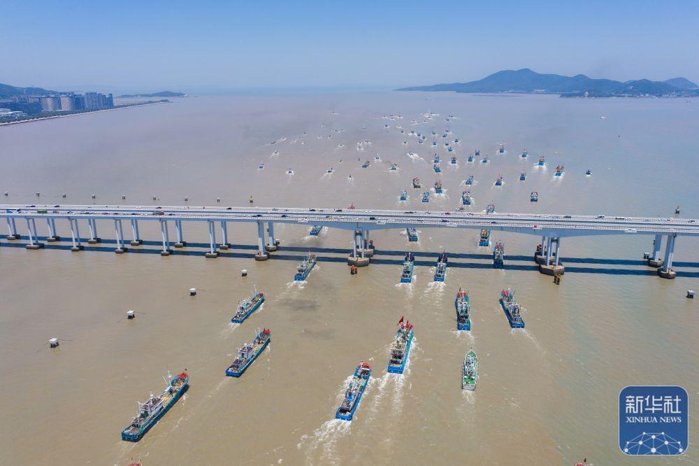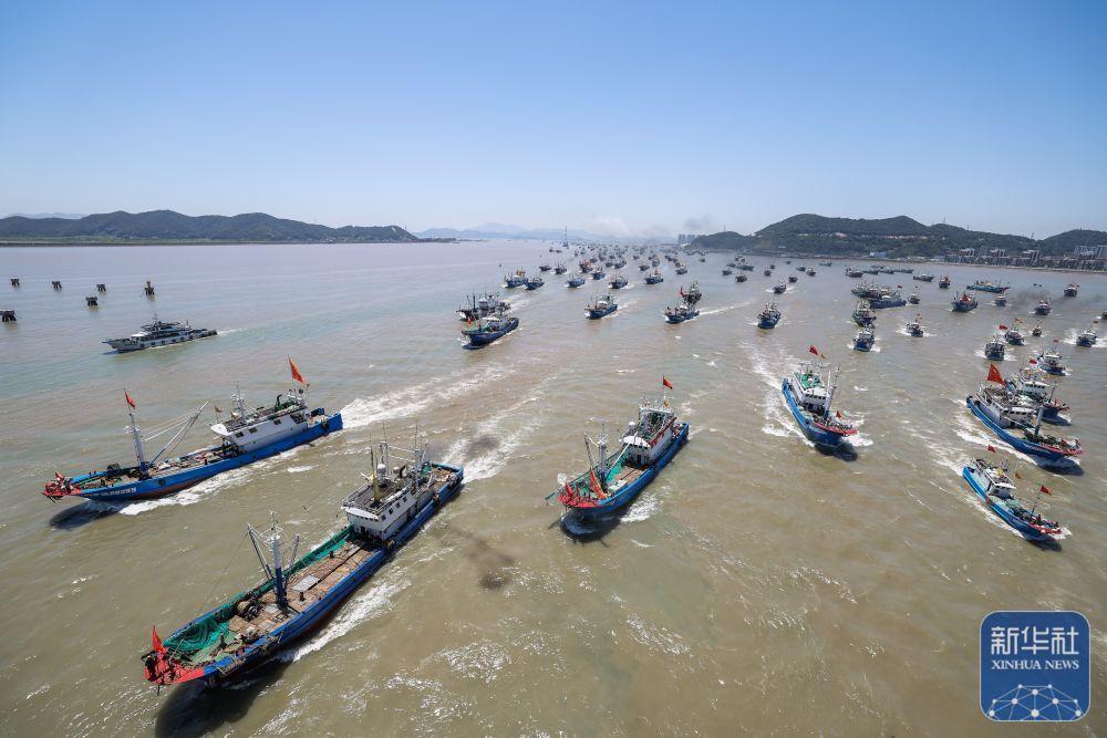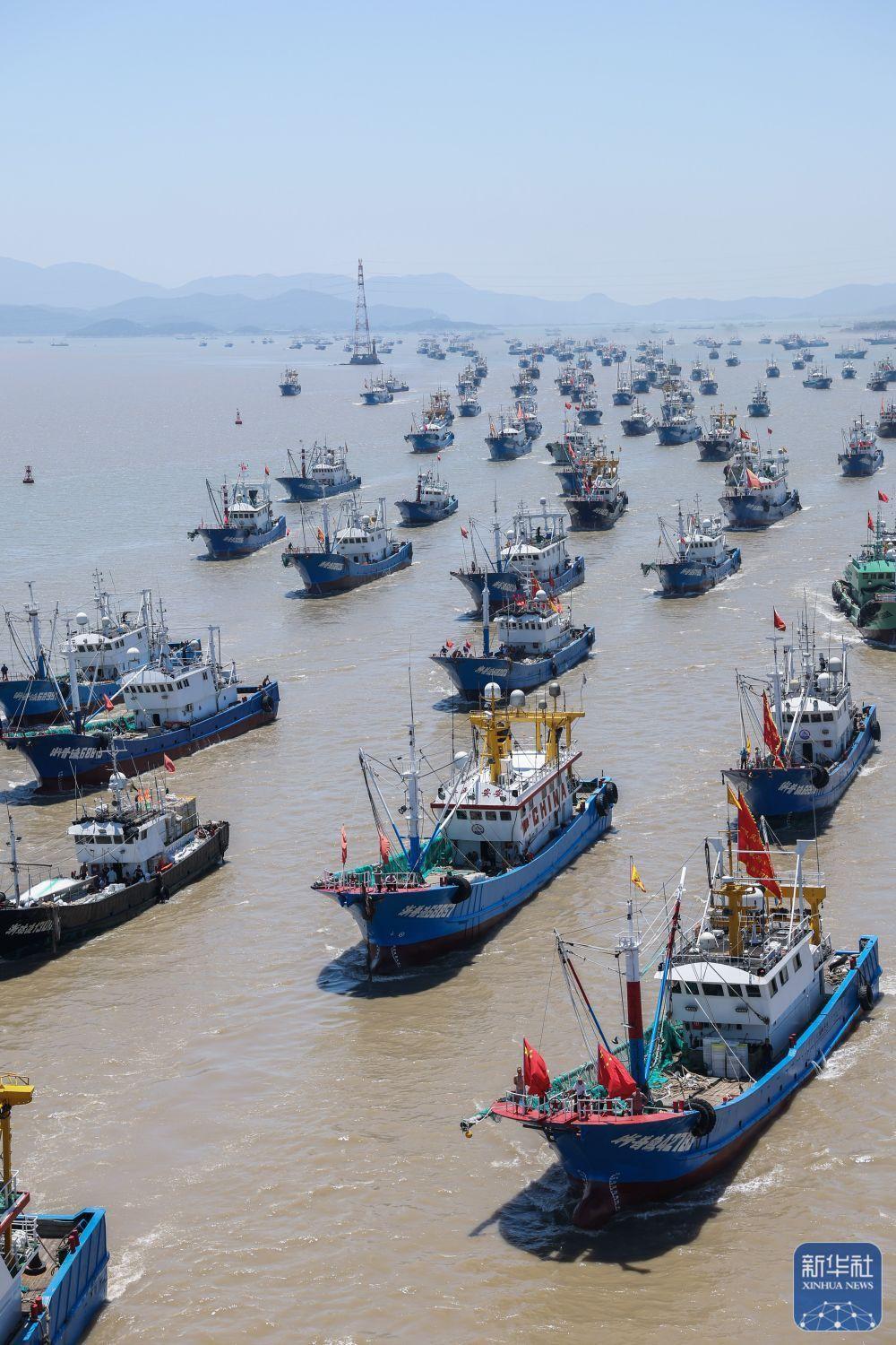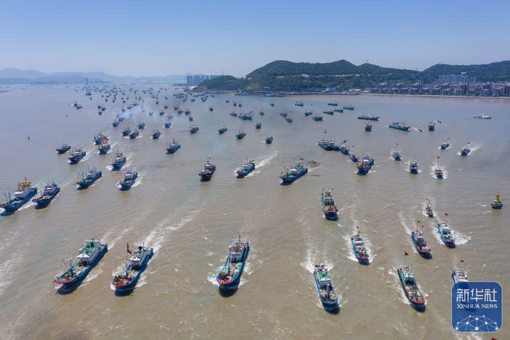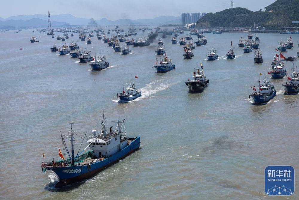↑8月1日,数千艘渔船从舟山市普陀区沈家门渔港出发,前往东海海域开启捕捞作业。