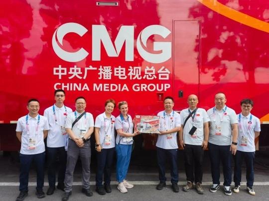 7月25日,慎海雄台长将《中央广播电视总台奥运会赛事直播技术创新发展报告》作为礼物赠送给了国际奥委会主席巴赫,法国国家奥林匹克和体育委员会主席、国际奥委会电子竞技委员会主席拉帕蒂恩。多位活动嘉宾都收到了总台送来的8K超高清转播车模型。“小红车”在手中,“大红车”在眼前~(点此复习总台研究院成果在巴黎首发!一份以奥运为题的智慧分享)