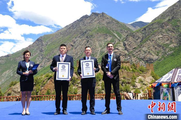 图为边坝县双项世界纪录认证现场。贡嘎来松 摄