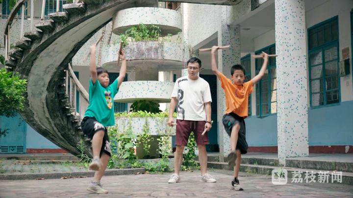 为了解决缺兵少将的问题,也让更多年轻人爱上英歌舞,2017 年,陈来发教练力排众议,打破“传内不传外、传男不传女”的旧俗,推动英歌参与“非遗进校园”活动,于普宁市南山小学组建一支少儿英歌队,面向全校招生,首批报名者多达 380 余人。自此,陈扬波也开始站在学生面前,成为了普宁英歌向下传播的一个纽带。