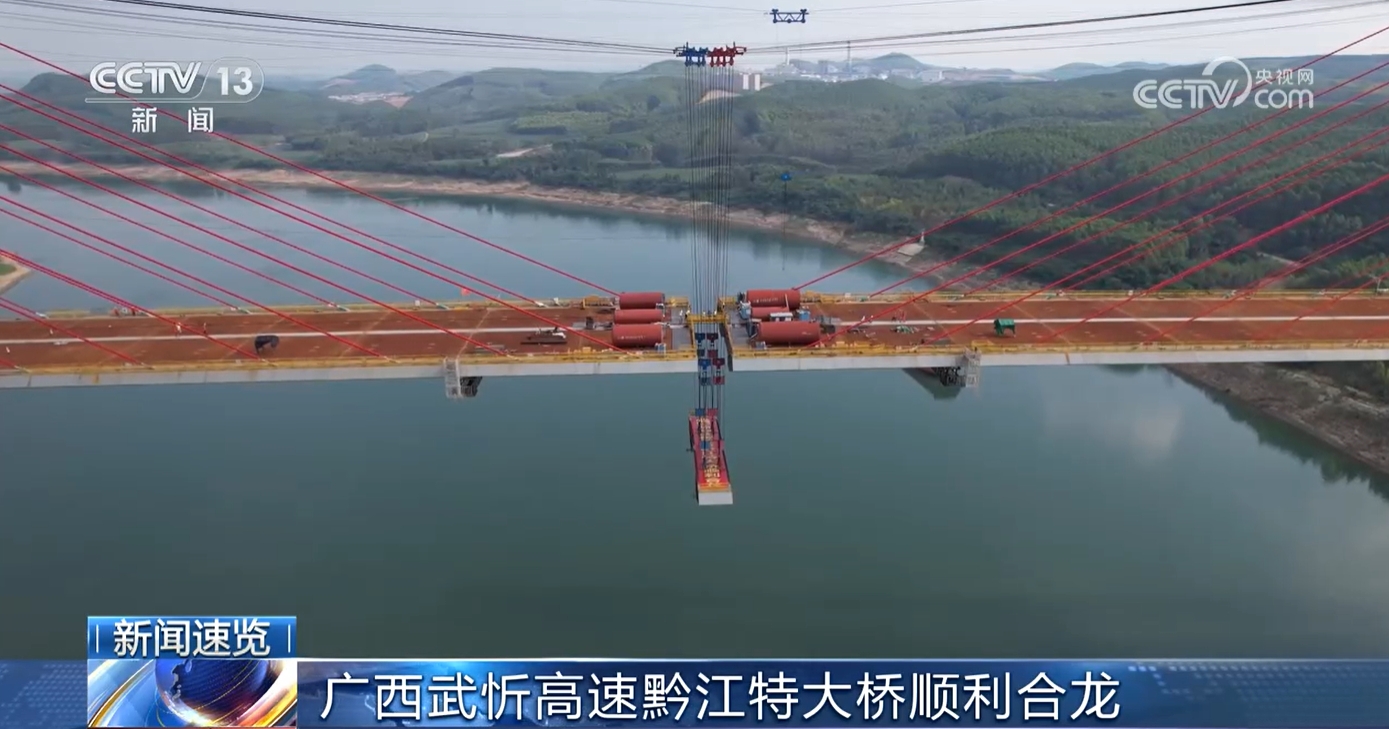 昨天(8月2日),随着第43片钢箱梁焊接作业完成,广西武忻高速黔江特大桥顺利合龙。黔江特大桥全长1339米、主跨618米,系双塔双索面混合梁斜拉桥,由两座216米高的钻石型变截面索塔托起,一跨过江。武忻高速全长118.744公里,目前项目已完成主线贯通,预计今年底建成通车。