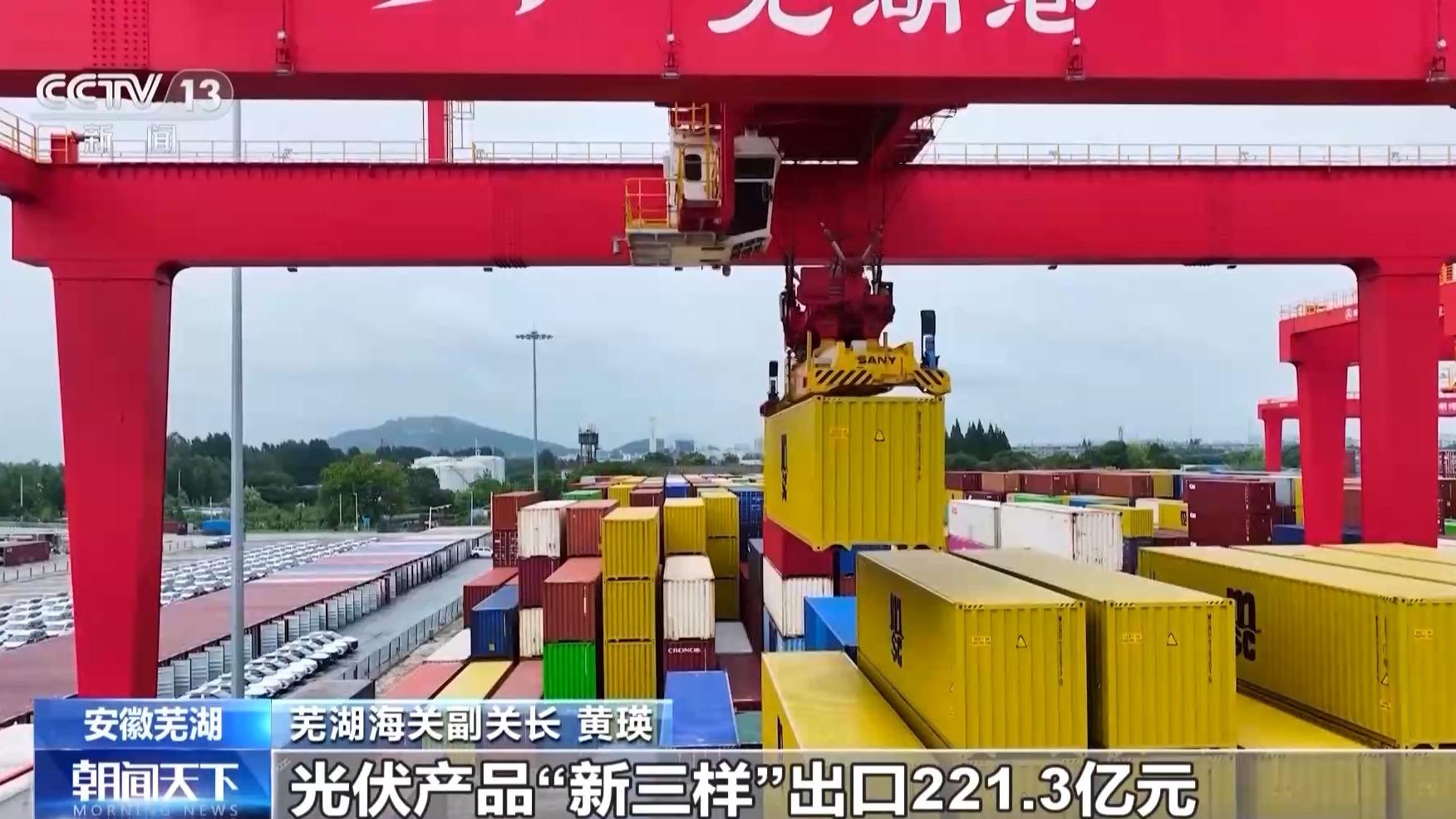 芜湖海关副关长 黄瑛:今年上半年,安徽省电动载人汽车、锂电池、光伏产品“新三样”出口221.3亿元,其中电动载人汽车出口49亿元,同比增长1.7倍,实现量价齐升。