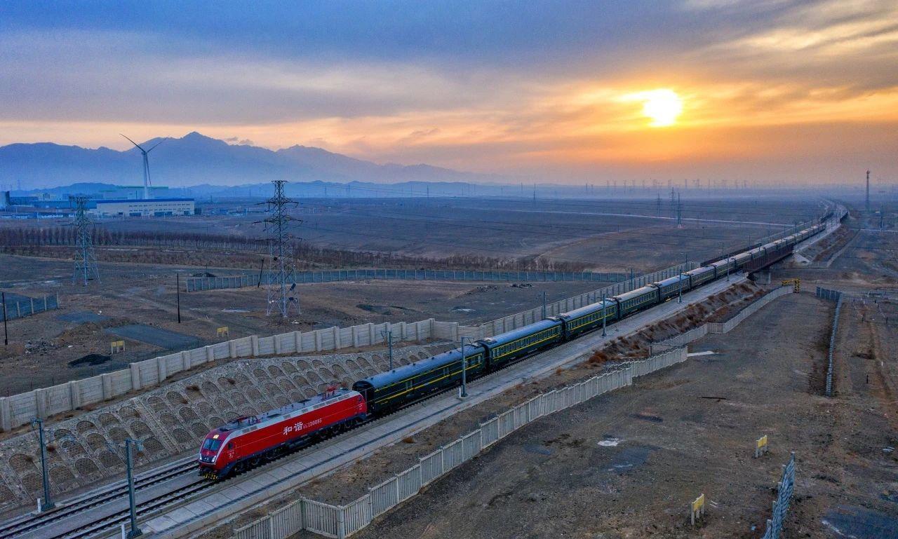 “坐着火车游新疆·天山号”高品质特色旅游列车是“坐着火车游新疆”旅游品牌旗下的产品之一,配备KTV、酒吧、餐车等设备设施,部分包厢配有独立卫生间,软、硬卧具选用舒适面料,途中确保一客一换,为旅客畅游新疆提供高品质出行服务。