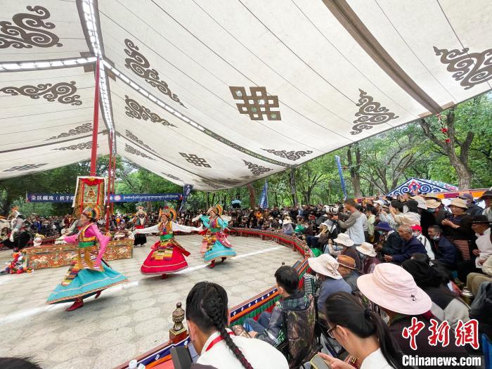 8月4日,世界文化遗产罗布林卡正上演着藏戏。中新社记者 赵朗 摄