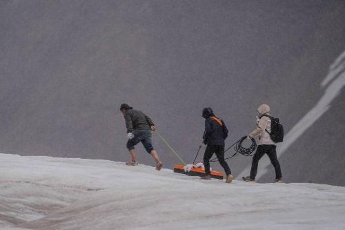 在海拔5200多米的冬克玛底冰川脚下,长江科学院水利部岩土力学与工程重点实验室工程师范越和景旭等队友,携带30多公斤的雷达设备,向着冰川进发。他们穿过冰川消融形成的河流,在冰川上铺设测量线,连续记录探地雷达接收到的电磁信号,依据反演数据探测冰川厚度。