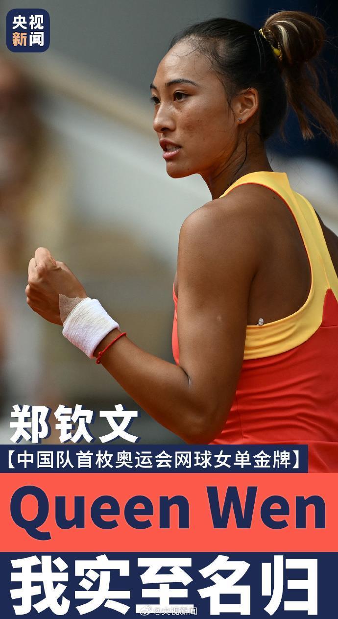 当地时间8月3日,在巴黎奥运会网球女子单打金牌赛中,中国选手郑钦文大比分2:0战胜克罗地亚选手维基奇,夺得金牌。这是中国选手获得的首枚奥运会网球女单金牌。