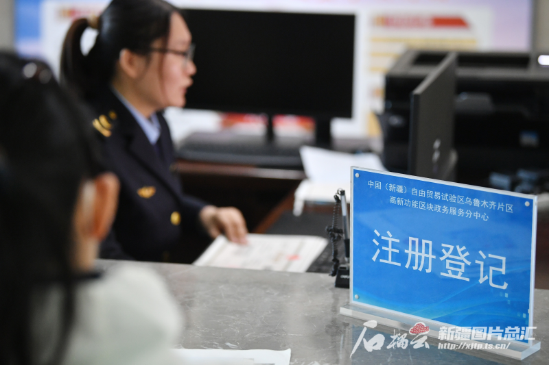 2023年11月15日,乌鲁木齐高新技术产业开发区(新市区)政务服务中心园区分中心工作人员为商家办理营业执照。(资料图)石榴云/新疆日报记者 邹懿摄
