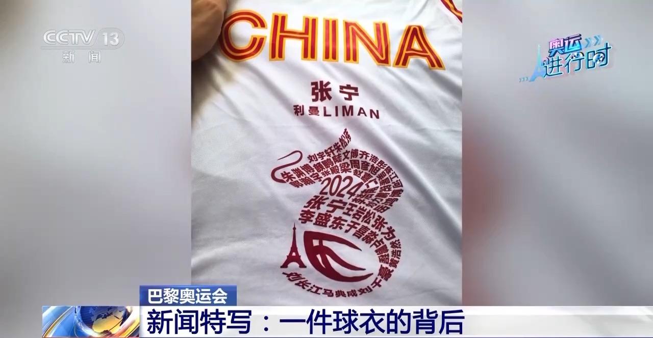 本届巴黎奥运会,中国三人男子篮球队继东京奥运会之后,第二次站上了奥运赛场。在比赛的第一天,队员张宁穿上了一件特别带来的球衣。上面印有着25个名字,他们都是中国三人篮球队的队员。