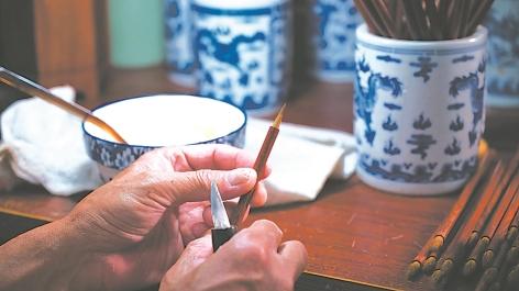 佘征军在制作宣笔。