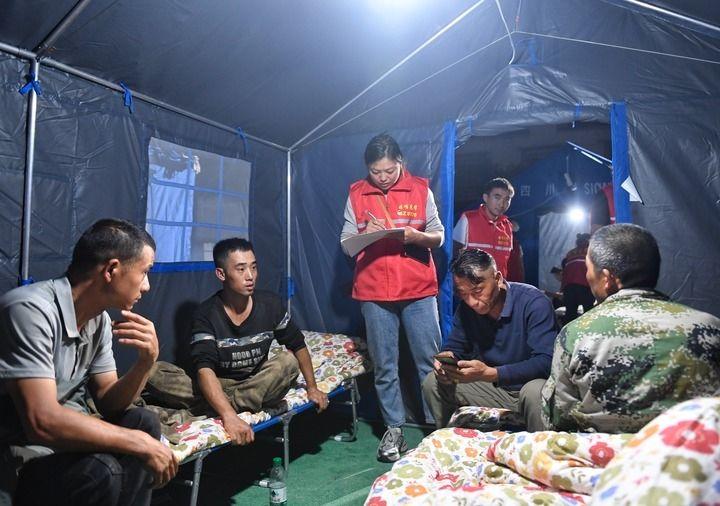 姑咱镇副镇长连丹介绍,郎鼓安置点共安置了70人,这是全镇4个安置点其中的一个。记者看到,安置点的供水、供电、住宿、吃饭、如厕、洗澡、消防、卫生等井井有条,有的帐篷特意留给一个家庭居住,十分人性化。初一女孩王蕊说:“我吓得发抖,但没吓哭,我很勇敢。”为了守护好撤离群众,当地干部、电力抢险队员在安置点彻夜值守。