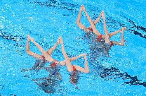 8月7日,中国花样游泳队在比赛中。新华社记者 夏一方 摄
