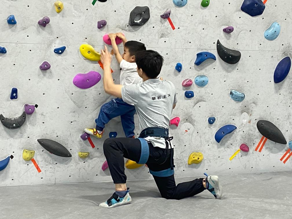 “攀岩主义”岩馆工作人员在指导儿童学员。新华社发