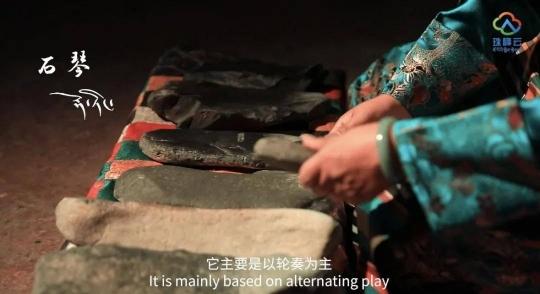 西藏自治区歌舞团演奏员 央珍:“石琴是一个古老的打击乐器,刚开始是西藏、青海、甘肃一带的,它是一个简单朴实的乐器,但是敲出来的音色是优美的,独一无二的,它主要是以轮奏为主。”