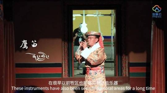 西藏自治区歌舞团国家一级演奏员、西藏自治区非物质文化遗产代表性传承人 次旦:“鹰笛在西藏来说历史也很悠久,距今有1700年的历史。它是用雄鹰的翅骨做的一种乐器,在很早以前牧区也能够见到这些乐器,但是在舞台上根本见不到这种乐器。在1997年制作了第一根用于西藏专业艺术团体进行表演,鹰笛是高亢,它音吹出来就是非常非常亮。”
