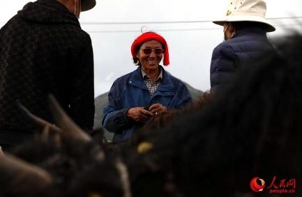 图为当雄县郭庆村排队领取牦牛的村民。人民网记者 次仁罗布摄