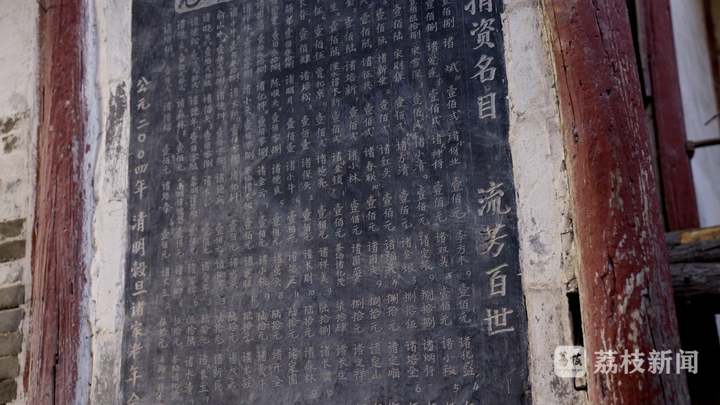石碑记录下村民们为修缮祠堂所筹集的钱款