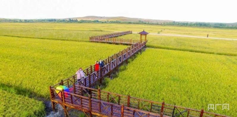 科右中旗杜尔基镇双金嘎查的水稻成了一道风景线(央广网发 受访单位供图)