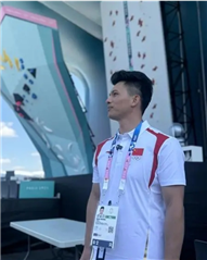中国攀岩队速度组主教练35岁的钟齐鑫