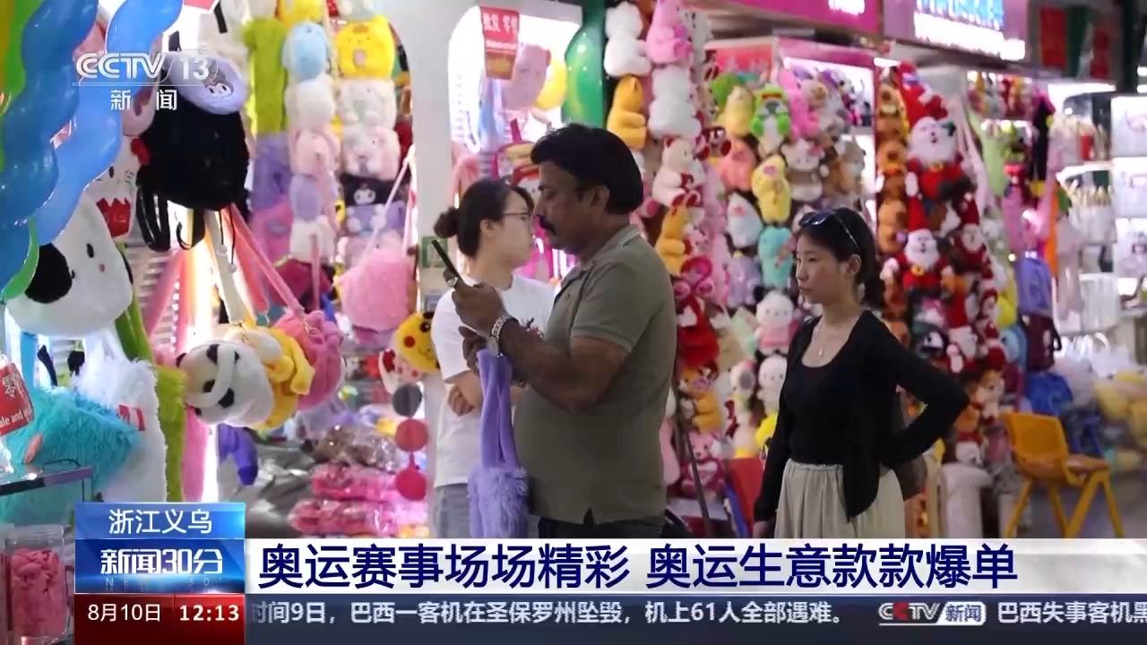 巴黎奥运会激战正酣,“奥运经济”也持续升温。从各类体育用品、奥运手环,到“冠军同款发夹”,在浙江义乌国际商贸城,国际客商来往穿梭,与奥运相关的产品订单不断。