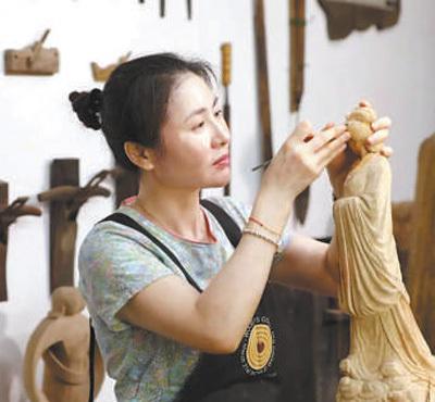 非遗传承人张红萍在制作泉州木雕。杨小玲摄