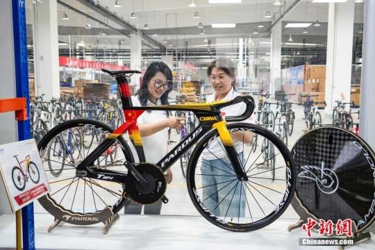 泰山体育生产的奥运竞赛版自行车。(资料图)贾鹏 摄