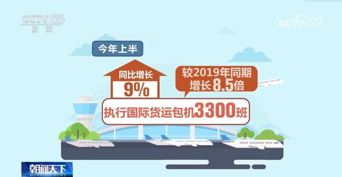 为适应跨境电商、电动汽车、锂电池和光伏产品“新三样”等货物运输的时效性、灵活性要求,国际货运不定期航班量也保持增长的趋势。今年上半年执行国际货运包机3300班,同比增长9%,较2019年同期增长8.5倍。