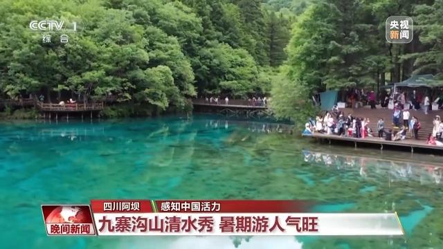 四川阿坝:九寨沟山清水秀 暑期游人气旺
