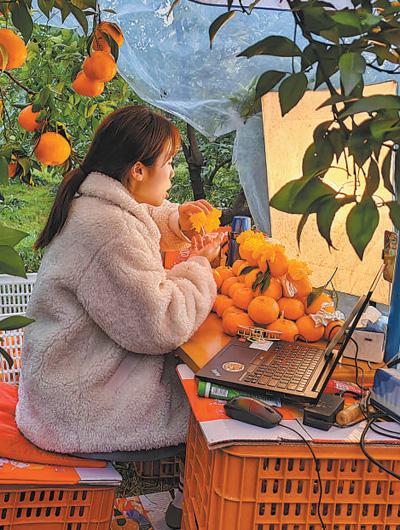 品牌富园 四川蒲江县国家现代农业产业园的农户直播销售柑橘。任质彬摄(人民视觉)