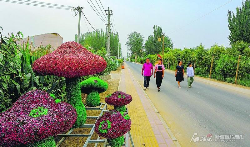 8月8日,洛浦县恰尔巴格镇阔恰艾日克村村民在家门口的柏油路上散步。买买提艾力·艾尼瓦尔摄