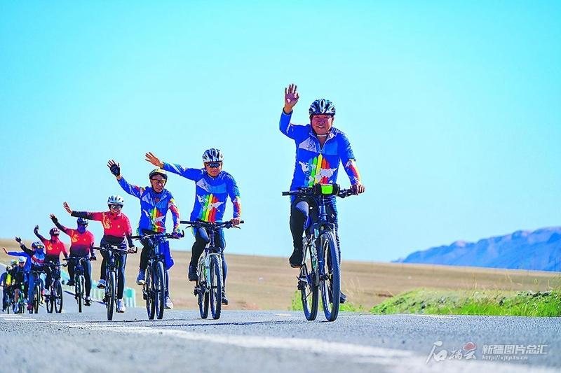 7月26日,骑行爱好者在呼图壁县百里丹霞景区骑行。近年来,呼图壁县加大农村公路建设,完善景区景点基础设施,吸引众多游客来乡村游玩,领略乡村美景。 陶维明摄