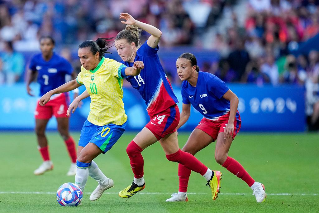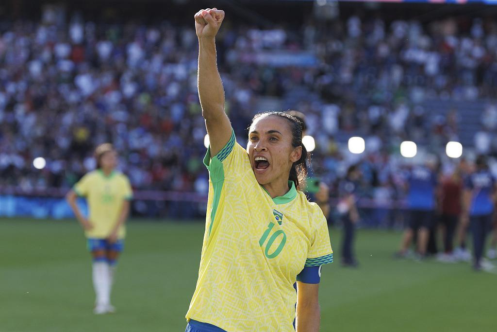 △法国当地时间2024年8月10日,巴黎奥运会女足金牌比赛中的巴西女足球星玛塔。(图自视觉中国)