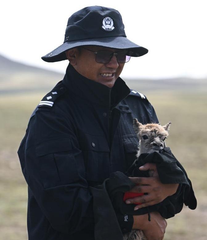 7月8日下午,巡山队员正在对可可西里腹地卓乃湖区域开展巡护。突然,对讲机传来了青海省公安厅森林警察总队五级辅警多结仁欠的声音:“我发现了一只刚出生不久的藏羚羊,它的周围没有其他藏羚羊。”