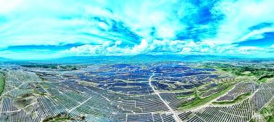 位于新疆伊犁哈萨克自治州的中国绿发尼勒克县400万千瓦风电光伏项目。新华社发