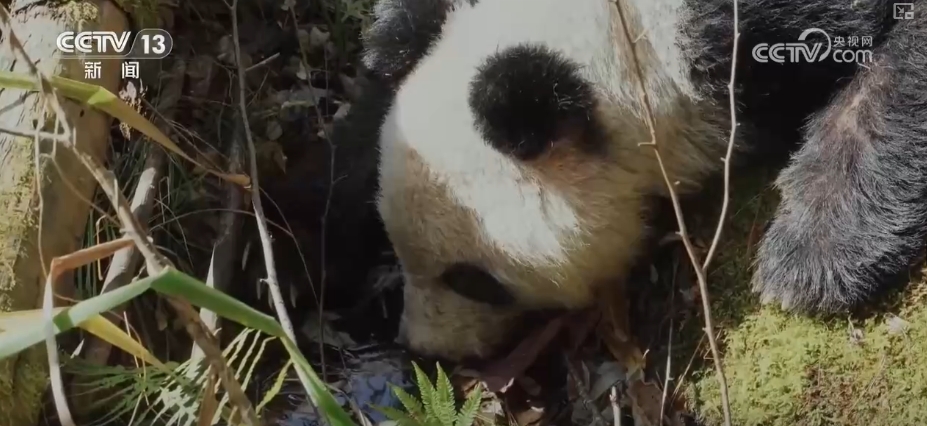不久前,在陕西长青国家级自然保护区的巡护道路上,工作人员有幸邂逅了一只下山的大熊猫。这只大熊猫前往巴山木竹林饱餐竹子后,扭头钻进竹林来到小溪旁喝水。令人惊奇的是,在喝水过程中,这只大熊猫竟然闭上了眼睛。看着它起起伏伏的肚皮,嘴巴还在水里却已经睡着了,呈现出科学家们常说的“大熊猫醉水”状态,畅饮泉水以至于醉倒不能走动。
