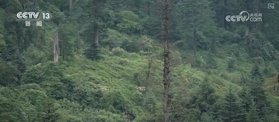 在海拔2400米左右的大熊猫国家公园荥经片区马草河保护站,首先映入眼帘的是大熊猫栖息地冷箭竹修复示范区,竹林和阔叶林布满山头。