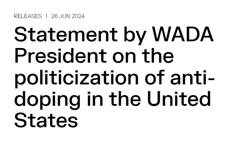 世界反兴奋剂机构主席维托尔德·班卡在官方声明中重申,美国对该机构的批评是源于“地缘政治”关系,试图将全球反兴奋剂体系“政治化”。